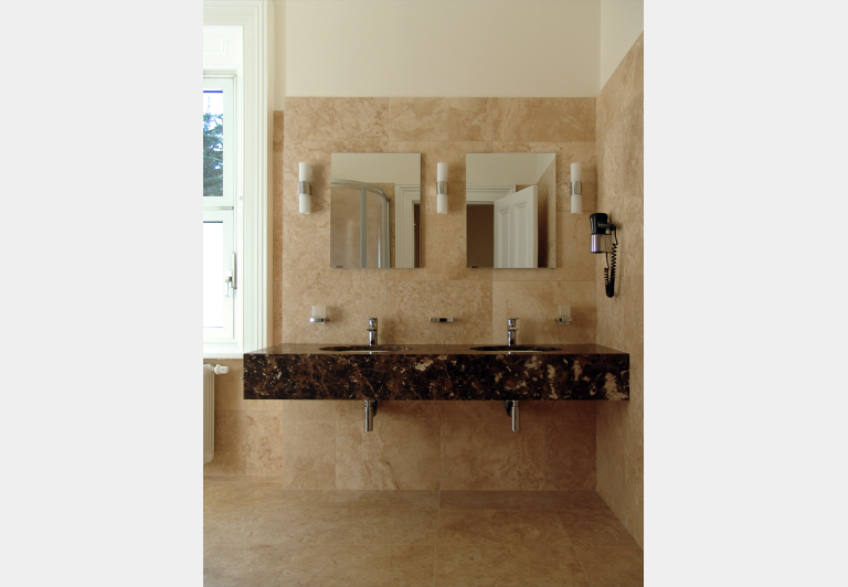 - Erneuerung der Heizung, Trennung in die Heizbereiche "amtlich genutzter Teil" (ATR) und "privat genutzter Teil" (PTR) der Residenz sowie neue Verrohrung und neue Heizkörper in PTR